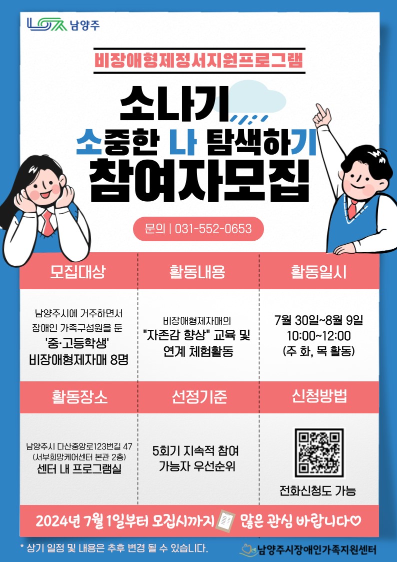 2025년 비장애형제정서지원프로그램 '소나기-썸머특강' 참여자 모집